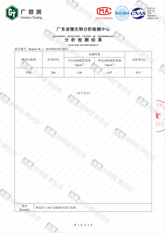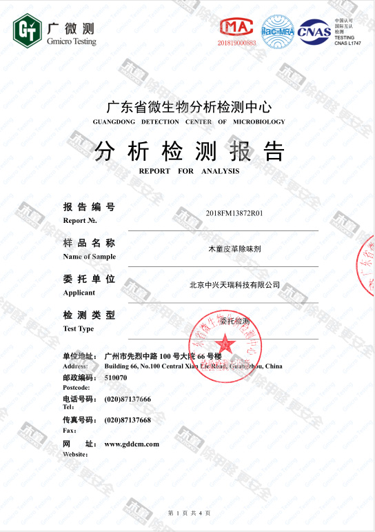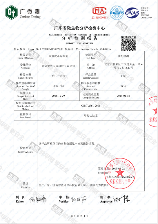木童皮革除味劑甲醛去除率檢測報(bào)告