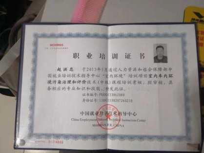 室內(nèi)車(chē)內(nèi)環(huán)境污染治理培訓(xùn)證書(shū)