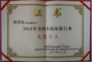 2014年室內(nèi)車(chē)內(nèi)環(huán)保行業(yè)先進(jìn)個(gè)人證書(shū)