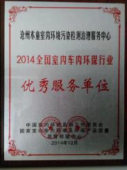 企業(yè)榮譽(yù):榮獲2014年全國(guó)室內(nèi)車(chē)內(nèi)環(huán)保行業(yè)優(yōu)秀服務(wù)單位